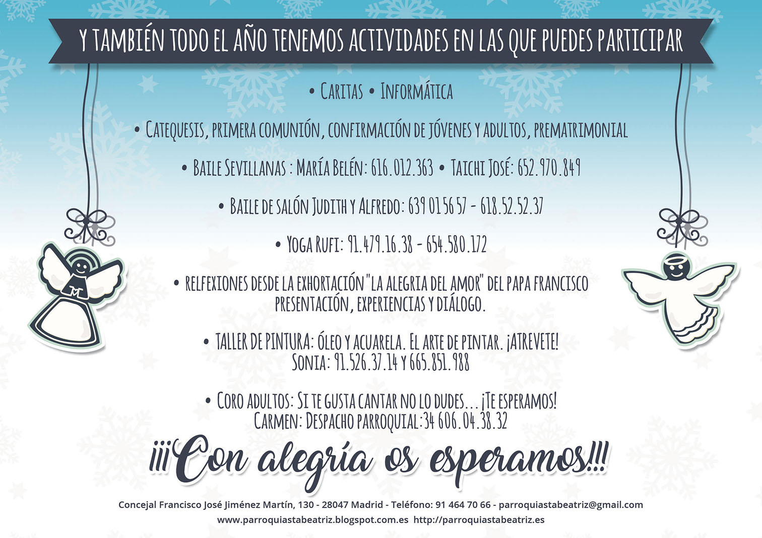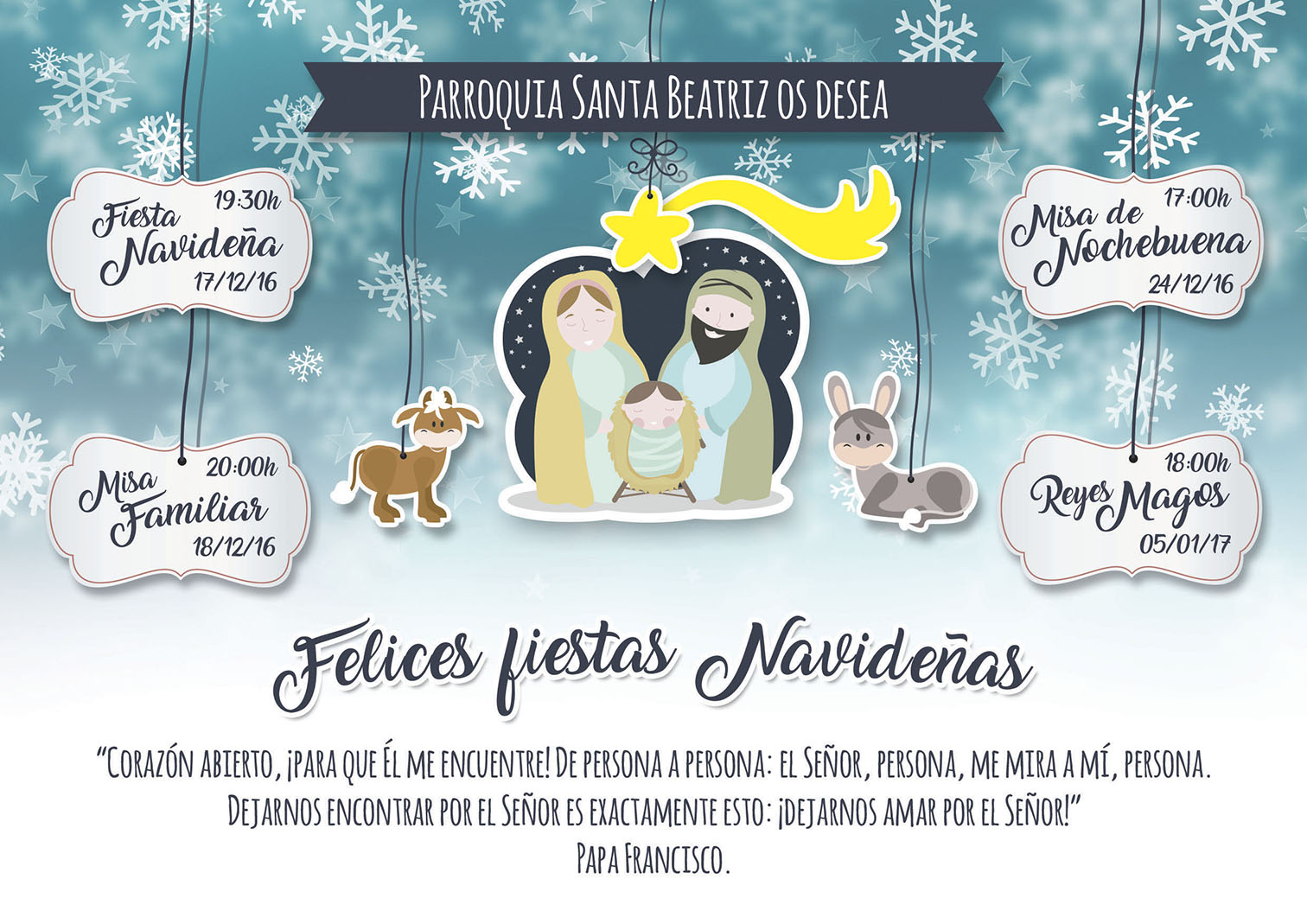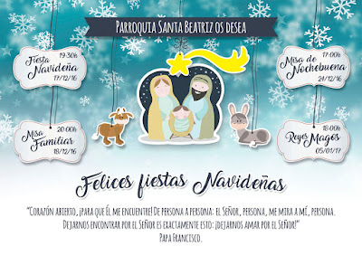 Hay dos errores en los horarios:Misa Familiar del 18/12/2016 es a las 11:30 h. Misa Nochebuena del 24/12/2016 a las 19:00 h.