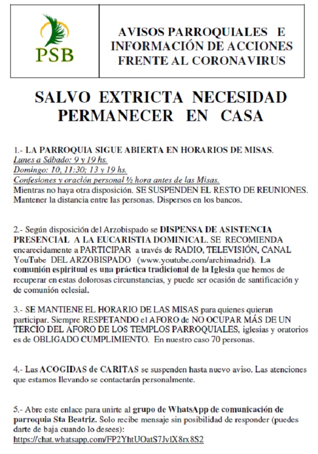 Horarios de la Parroquia Santa Beatriz