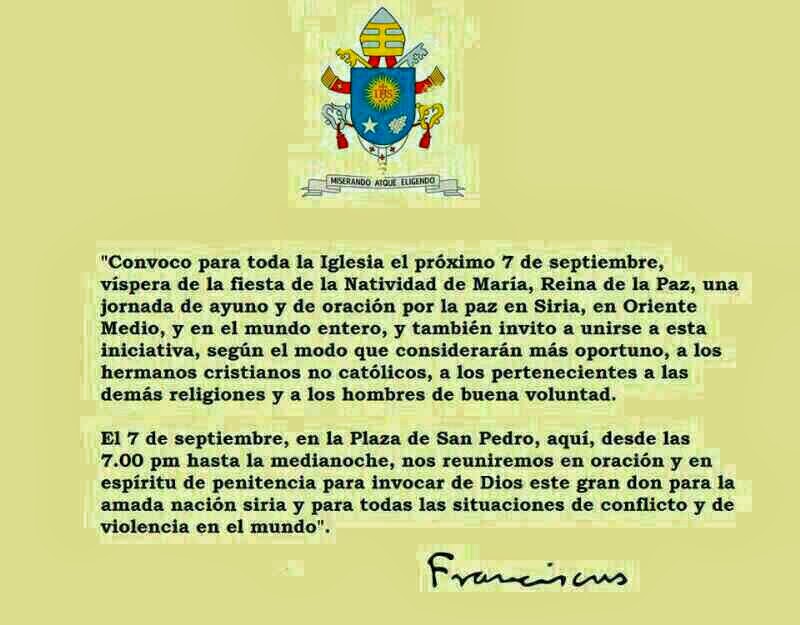 JORNADA DE AYUNO Y ORACION POR LA PAZ EN SIRIA